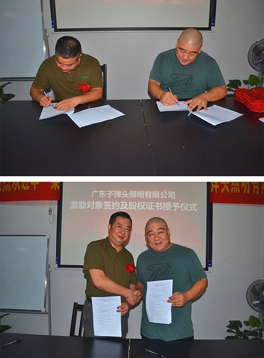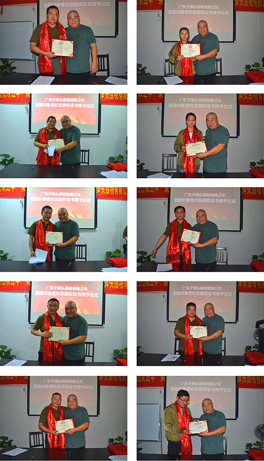 在此,恭贺今天家人们与子弹头照明“喜结良缘”,成为首批股权激励对象。相信在不久的将来,会有更多勤劳优秀、业绩卓越的家人们,通过努力成为子弹头照明的合伙人。