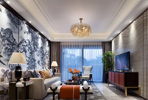 客厅是家庭中最大的休闲、活动空间,也是家人朋友相聚的重要场所,需要灯具营造温柔的氛围,明亮庄重的吊灯或是吸顶灯是首选。通常会运用主照明和辅助照明的灯光交互搭配,可以通过调节亮度和亮点,来增添室内的情调,但一定要保持整体风格的协调一致。