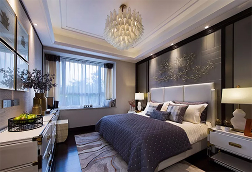 睡觉休息的地方,当然是温馨舒适安静最重要,避免用耀眼的灯光。主灯的风格要与整个卧室的装饰风格一致,光线切勿太强或过白,以防让卧室内显得呆板没有生气。