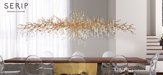 Serip灯具创作出许多创意大胆、质量精巧的灯饰雕塑品。SERIP作品的设计灵感来自花卉、树木、瀑布等自然形态,运用青铜、玻璃、水晶等高质量的珍贵材料,创作出许多宛如艺术品的典雅灯饰,可轻松融入各种古典氛围或现代质感的奢华空间。