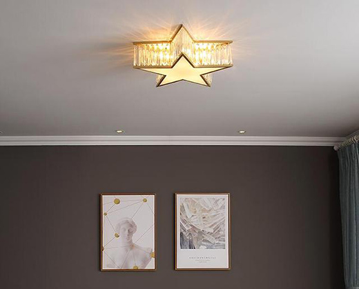这款吸顶灯采用五角星的设计,独特有新意,非常适合放在儿童房。透明的水晶能够很好的折射出灯光,让光线更加柔和透亮,没有杂质。全铜的灯体,结实耐用,防腐防锈,让灯具始终保持焕然一新。
