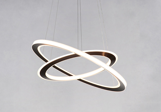 新特丽灯很多都是原创设计,例如新特丽的启元系列吊灯,其使用了独特的三角圆环设计,犹如浩瀚宇宙中的飞碟,在设计上使用内外发光设计,同时拥有外窄内宽、外宽内窄设计。