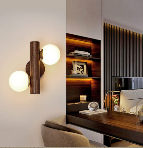 胡桃木与灯具的结合,木材质地坚硬,经久耐用,其斜而交错的纹理,结合灯具简约的造型,营造出清净既定的禅意氛围,展现意蕴深远的东方美学。