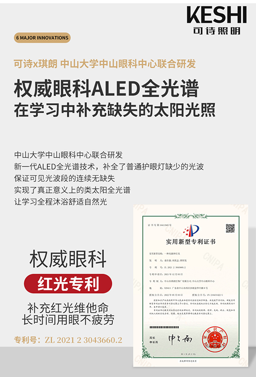 为满足消费者对健康光环境的期待,近日,KESHI可诗照明与KingLong琪朗灯饰强强联手,正式联名推出一款为守护用户用光健康而生的ALED全光谱成长护眼灯!