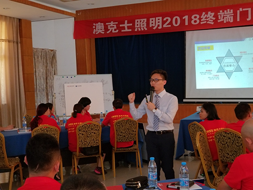 2018年8月16日,澳克士照明2018终端门店新零售集训会在合肥,石家庄同时召开,此次的会议特邀请众建培训机构为我们澳克士的经销商家人们讲解营销之道。