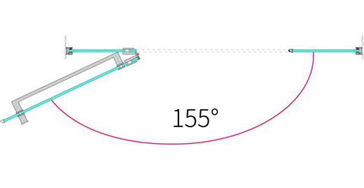 SA2除了简练的外观和内部结构里满足实用的功能外,也充分考虑用户的感受。如SA2采用超广角合页,实现了155°超大角度开门设计。普通淋浴房一般开门角度只能达到90度或者120度左右,开门角度比传统淋浴房提高30%。更大的开门空间,既可以最大化降低门的存在感,又可以最大化提升空间利用率,使得用户进出障碍更小,行动更方便自如。