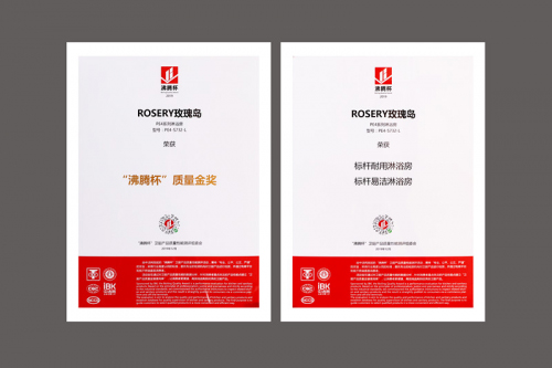 正因玫瑰岛始终在质量之路上悉心耕耘,保持了高质量发展,玫瑰岛第四代淋浴房PE4系列荣获了“沸腾杯”质量金奖和“标杆耐用淋浴房”、“标杆易洁淋浴房”质量标杆奖两项大奖。