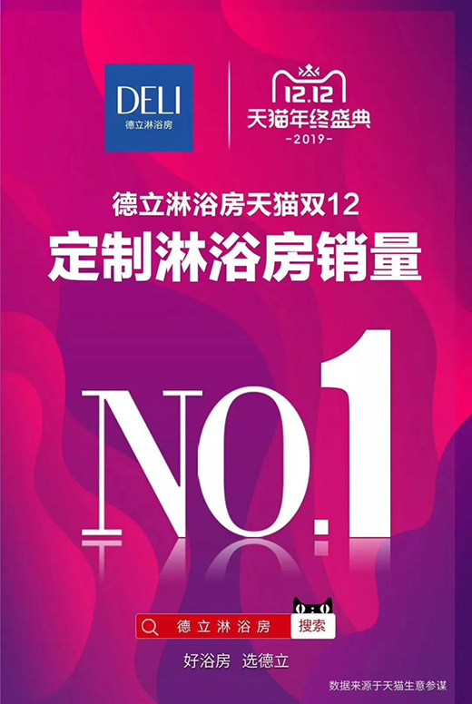 在刚刚过去的“天猫双十二年终盛典”,德立淋浴房销量稳居定制淋浴房行业第一,再次用实力捍卫自己的荣誉和地位。德立继双11之后再次位居淋浴房类目第一,这傲人战绩的背后有全体员工的不懈奋战,同时也是消费者对德立淋浴房产品的认可。