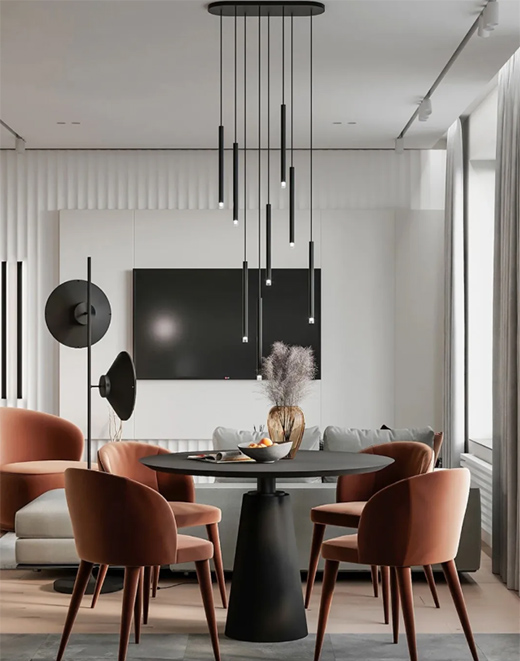 本装修案例摈弃浮华的线条和装饰,还原材质的本来美感,优美简洁的线条,简洁实用的家具,利用灯光的运用设计,营造舒适又充满灵感的生活空间。