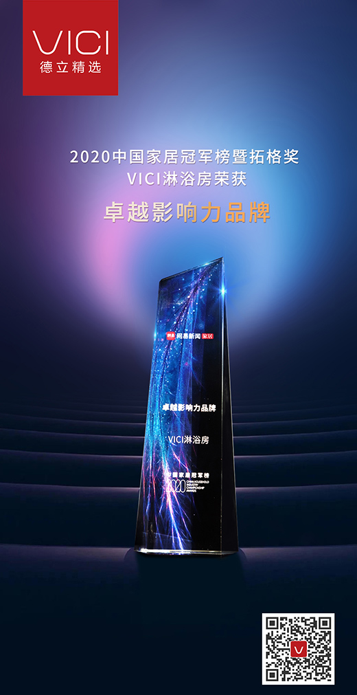 12月29日下午,“向好生活提案——网易2020中国家居冠军榜暨拓格奖颁奖盛典”在广州隆重举办,家居领袖齐聚,共襄行业年度盛宴。本次大会上颁发了多项重磅奖项,德立淋浴房荣获2020中国家居冠军榜“匠心质造品牌”,德立精选VICI,荣获“卓越影响力品牌”。由此可见德立及德立精选VICI品牌在行业内以及消费者中的影响力和知名度。