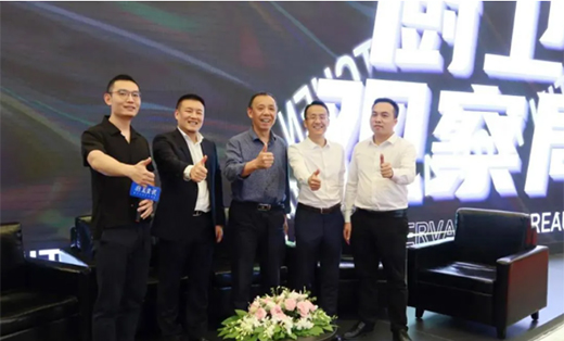 厨卫资讯创始人喻镇荣(中)、FRAE董事长张海锋(左二)、莱博顿市场总监黄治鹏(右一)、蚁安居董事长李琦(右二)、厨卫资讯喻月明(左一)
