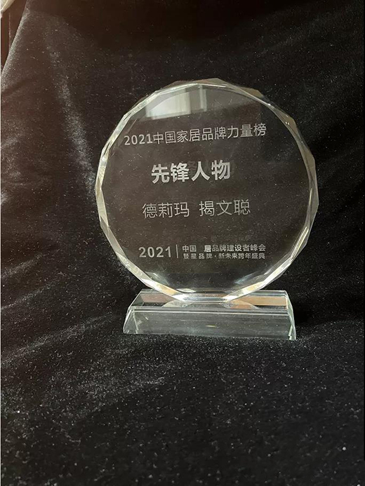 德莉玛淋浴房联合创始人揭文聪先生,多年来专注于专业与服务,在行业中持续精耕细作。在此次卫浴品牌建设者峰会中,荣获“先锋人物”的称号,既是行业对个人,也是对德莉玛的肯定。