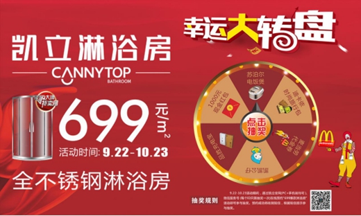 在活动期间内(9.22-10.23),只要通过凯立官方渠道活动专区进行预订随即即可参加惊喜抽奖活动,包括苏泊尔电饭煲、1000元的现金红包、品胜充电宝、凯凯公仔、迪卡侬时尚旅行包统统带回家,而这次活动凯立淋浴房还特意联合麦当劳送出过万张套餐券,大牌与大牌之间的互动,总会擦出不一样的烟火。