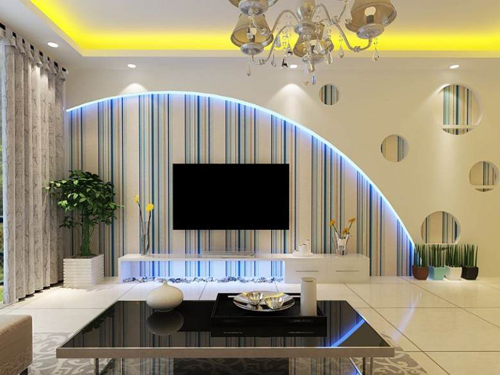 电视背景墙在考虑颜色的时候,还是要尽可能避免高色差的设计,以清淡均匀不瞩目的颜色为主。这样可以较大程度的保证观看电视时候的视觉感受,保证画面的清晰。如果颜色太过跳跃,很容易带来观看者的视觉疲劳。