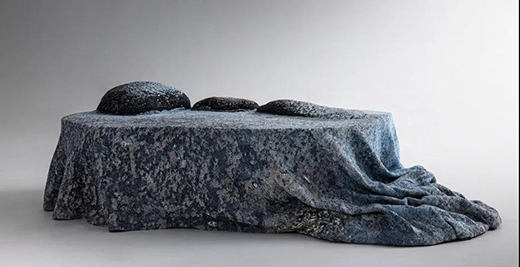 首先,Front Design对大量不同的岩石景观和海边景色进行拍摄、3D扫描和手绘草图,接着利用这些图像构建出数字化家具模型。Patrizia Moroso 随后聘请了Kvadrat Febrik和Limonta等纺织专家来开发数字印花面料,生产出模仿Front Design拍摄的图像提花和Gobelins织物,在纺织品上重建自然表面。最后,将织物覆盖在利用铣床生产的具有岩石形状或海浪形态的木制家具上。