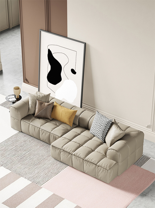 俗话说得好,“客厅的气质看沙发”。一个时尚的沙发,奠定下整个客厅的基调,侧面反映出主人家的身份和品味。洛品家具这款卡其色格子状沙发,清新又典雅,将简约调性与自然舒适融合地恰当好处,给人带来明朗清新的感觉。不仅好看,而且好用。洛品家具选用优质皮料,最大限度还原自然韵味,蓬松的填充料被上乘的皮革包裹,展现了前所未有的舒适度。沙发上再摆放柠檬黄、黑白条纹、赤金色的抱枕,提升沙发的视觉变化,让空间更为宁静有质感。