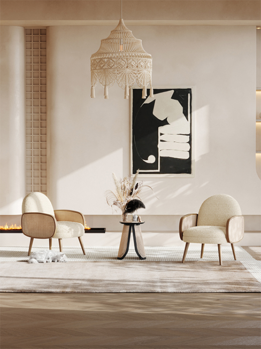 身处在充满侘寂感的空间中,会让人无端平静下来,意识向内,去领略静下来的空间之美及发现自我之美。在风靡潮流圈的侘寂风家居上,洛品有家凭借前瞻性的目光走在时尚的前沿,运用自然的材质、低饱和度的配色、不对称的构造,搭配出简约、自然、质朴和谐的空间,描绘出生活的安逸美好。
