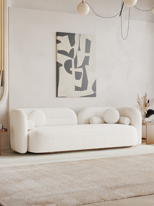 侘寂风是一种比极简风更加冷淡的风格,不会有跳脱的亮色出现,没有强冲击力的色彩,常用大地色作为基础用色,米色系、高级灰也是常用的色调。洛品有家将低饱和度的配色运用到极致,使整个空间都明亮起来,温馨且独具品味,就像一杯恰到好处的清茶,淡而有味,平而宁静。