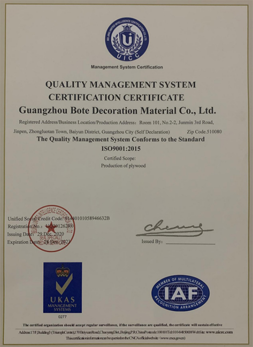 我们可以预见,高举质量管理体系认证证书的华鼎板材,未来定会迎来更大的发展与商机!