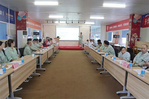 在安全培训试讲环节中,板材、地板、全屋定制、科技木公司四个小组代表自由拟定培训主题轮流上台作安全培训试讲。