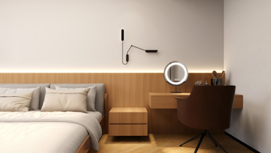 床头柜、梳妆台与床头衔接一体
