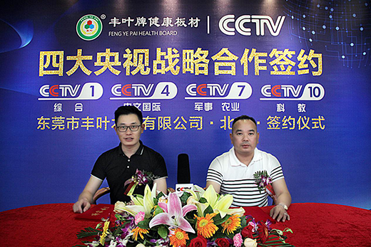 2018年,丰叶板材凭自身在板材行业“摸爬滚打”多年、脚踏实地苦干出来的成绩,向央视呈递了一份完美的申请。经过央视数月的筛选审核,最终丰叶板材成功通过了央视的考核,其广告宣传片将于央视CCTV-10频道火热开播。届时,丰叶板材品牌广告片将广泛流传于中华大地,使“丰叶板材”品牌知名度得到不断的提升,并依借中央电视台权威的实力“背书”拉伸品牌价值!