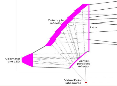 在尾灯设计中,大致的光路图如下: