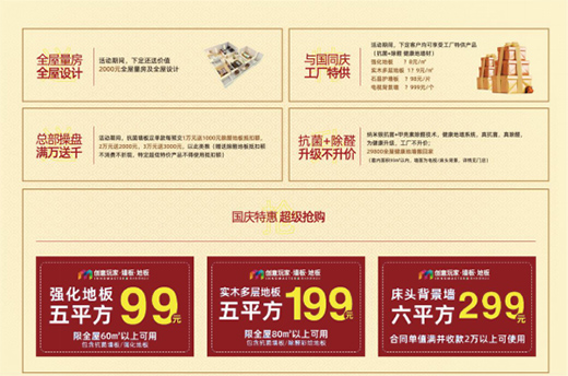 (一)强化地板:99元/五平方米(限全屋60㎡以上可用,包含抗菌墙板/强化地板)