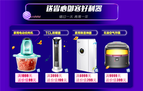 暖心的双12,万象地板旗舰店奉上御寒好利器:满1999元送家用电动绞肉机、满3999元送TCL取暖器、满6999元送家用除湿神器、满9999元送无油空气炸锅,让你温暖备至。