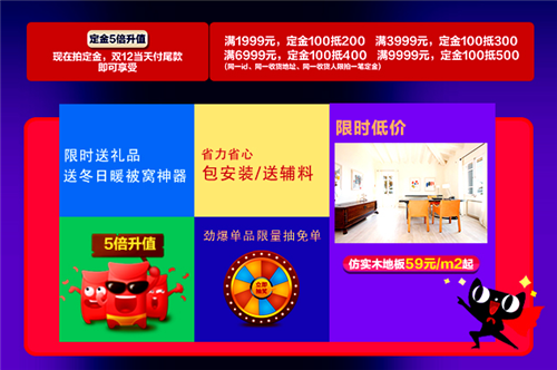 定金5倍升值!提前购活动期间,定金预付100元,在双12活动当天,可以享受4档满减优惠。100元可抵200元、300元、400元……最高可抵用500元!