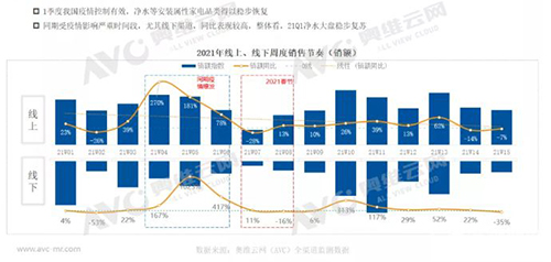 对比较为特殊的20Q1,今年的净水器市场比较繁荣,据奥维云网(AVC)全渠道推总数据显示,今年21Q1零售额的规模达到41.8亿元,同比提升了41.6%,零售量规模有193.4万台,同比提升了32.3%,能看出来市场增速比较明显。但对比常规年份19Q1来看的话,零售额规模反而下降了16.7%,尽显疲软,这也就意味着净水市场实际上还没有恢复到常规水平,还需继续努力。