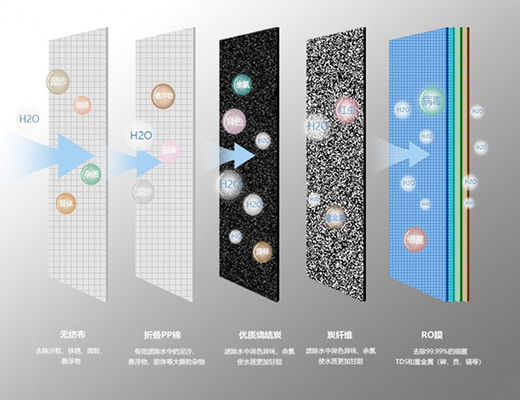 诺百纳A10S末端纯水直饮机,采用RO反渗透过滤技术,精滤精度高达0.0001微米,可高效去除余氯、细菌、病毒、藻类及固体悬浮物。联合以下技术使纯水机具有更强的优势: