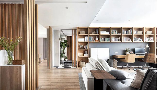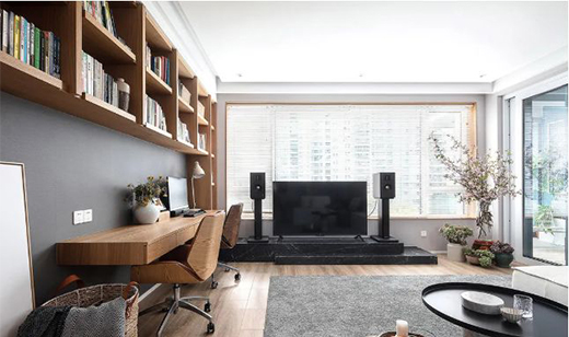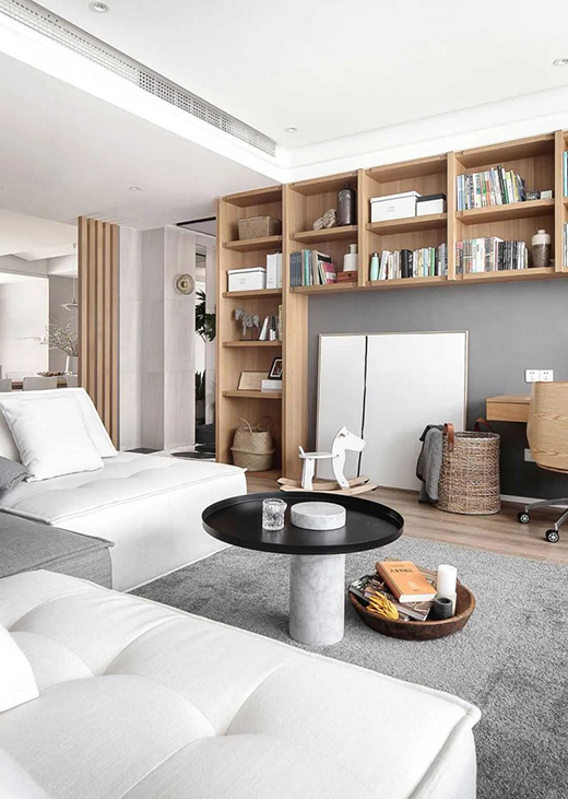 在客厅处设置无隔断的工作区域,在闲暇时光,和孩子一起阅读、充电!