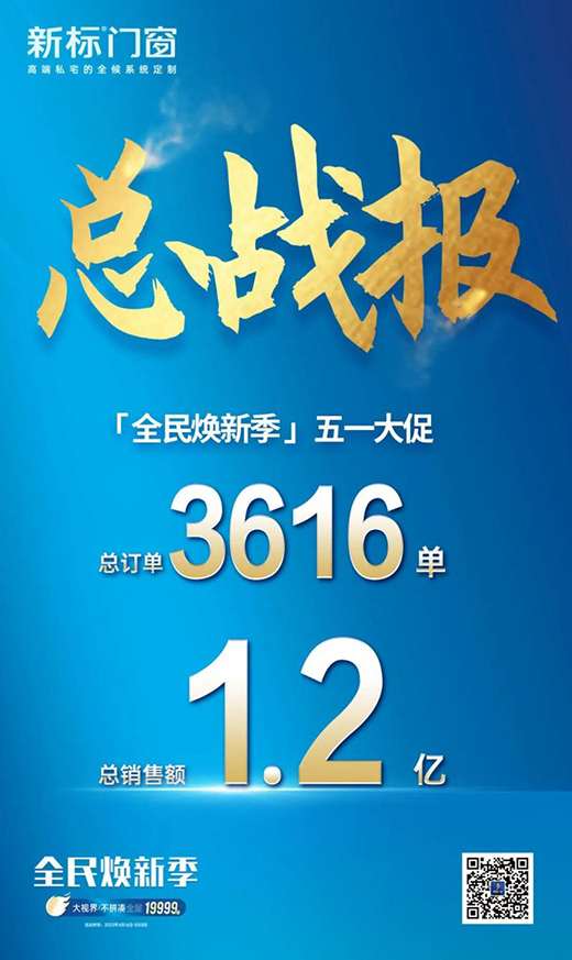- 新标门窗五一大促销售额破1.2亿元,圆满收官