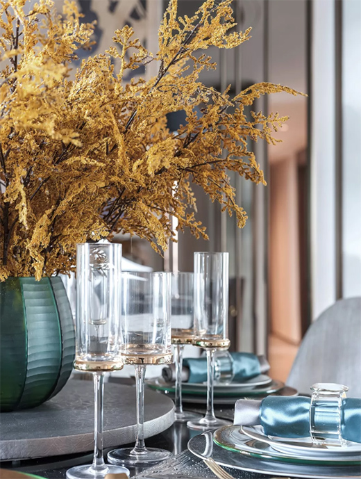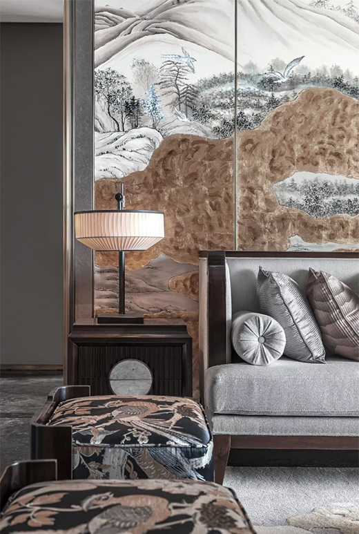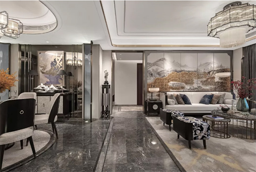 以新东方风格设计,让东方元素洗去时光的束缚,用简明扼要的设计符号表达传统文化的内涵,通过传统意象与现代材质的对话碰撞营造出雅致惬意的空间氛围。