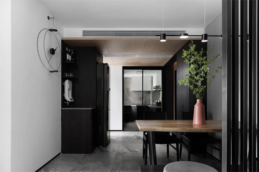 为了不破坏空气的对流,设计上将门洞加高,保证和加强了空气的流动,同时提亮了空间。