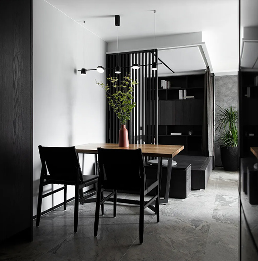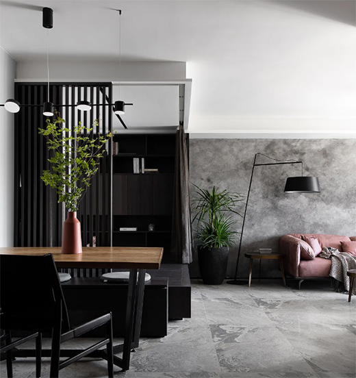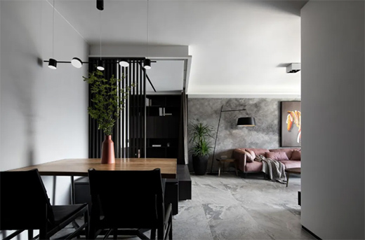 沉静高级灰与鲜活绿植的碰撞,或许也是不一样的动静结合。