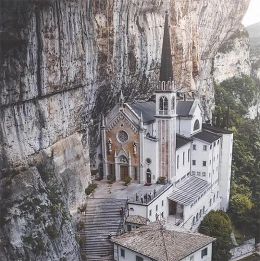 仿佛悬挂在空中的意大利教堂—Santuario Madonna della Corona,这座与高山峭壁融为一体的隐修外墙泛白,既梦幻浪漫又危险。