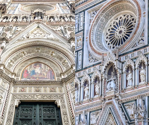 世界五大教堂之一—意大利圣母百花大教堂,被列入世界文化遗产。白红绿是古典艺术与科学的结合,被大诗人徐志摩译作“翡冷翠”。