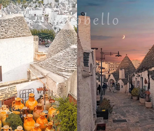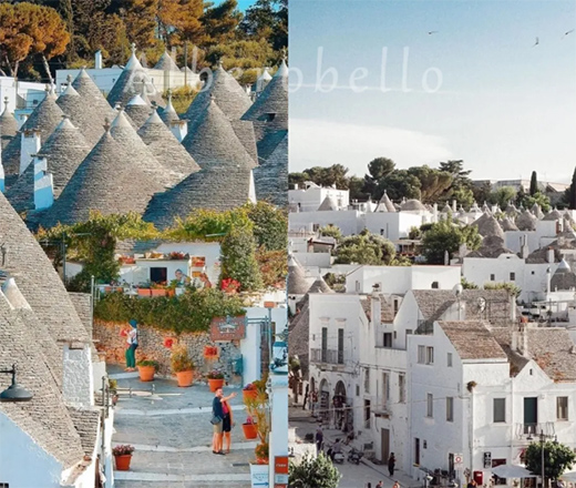 阿尔贝罗贝洛白色斗笠屋小镇,城内的楚利建筑世界知名,1996年被联合国教科文组织列为世界文化遗产。