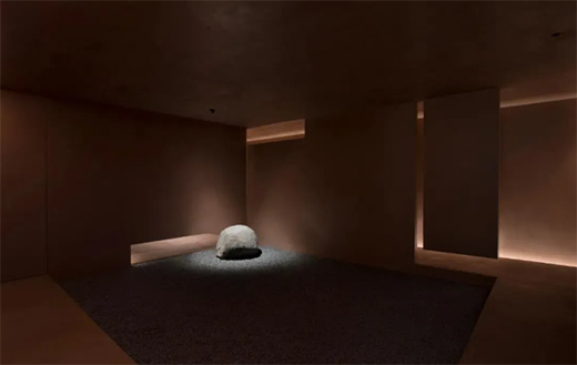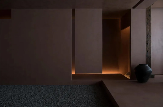 “静寂”与“空寂”有异曲同工之趣,都传达出“没有精神与物质的区别,只有物即心,心即物”的精神,无主客之分,将空间内所有的对象完全合一的状态。建筑外的纷扰与室内的侘寂形成极大的反差效果,让人可以在这个空间中脱下城市的束缚,放下压力、拥抱自由,在柔和的灯光中用肉眼可见的原始状态接受空间中的自然美。