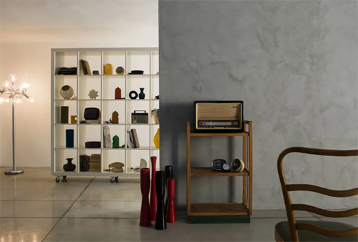 该项目中的墙面材料均使用意大利威罗进口艺术涂料中的旗舰产品-石灰基。威罗石灰基取材于意大利卡拉拉山中的卡拉拉石材,以产量低、品位高、总量少而备受瞩目,经过高温煅烧等一系列复杂工艺,研制而成。