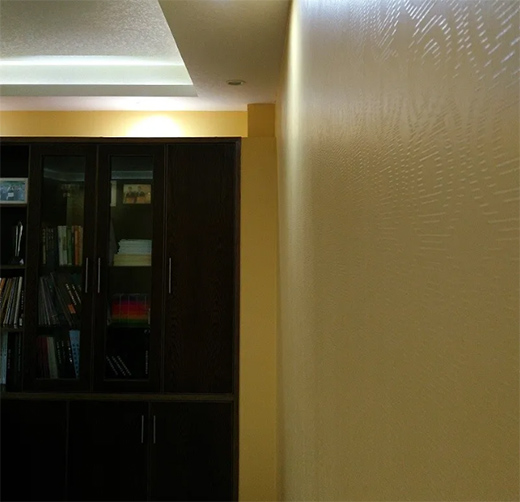 2.色彩也可以使人有距离上的心理感觉,黄色有突出背景向前的感觉,青色有缩入的感觉,暖色为前进色--膨胀、亲近、依偎的感觉,冷色为后退色--镇静、收缩、遥远的感觉,因此在家庭彩致艺术涂料选择中,面积较小的房间要选用"暗色调的墙面",使人有面积扩大的感觉。如果选用明亮色彩的彩致艺术漆墙面就会显得空间狭窄,增加压抑感。