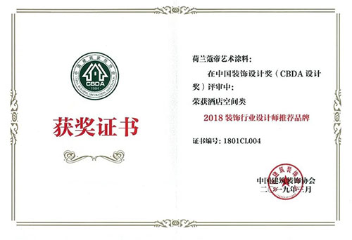 除此之外,荷兰蔻帝还荣获过“2018装饰行业设计师推荐品牌”。