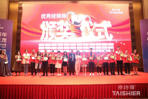 接下来会议进入众人期待的环节——优秀经销商颁奖与分享。企业的发展离不开经销商的努力奋斗,在泰诗尔就有这么一群有激情有想法的经销商家人,他们在自己的岗位上勤勉耕耘,无私奉献,用自己的忠诚与热血,浇灌出了泰诗尔的硕果累累,他们是泰诗尔突围市场的前锋队员。本次会议表彰优秀的经销商,感谢他们为泰诗尔未来发展树立标杆与榜样,并邀请他们分享成功的经验。