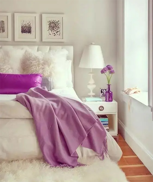 另外,还可以运用色彩对人产生的不同心理、生理感受来进行装饰设计,以通过色彩配置来营造舒适的卧室环境。