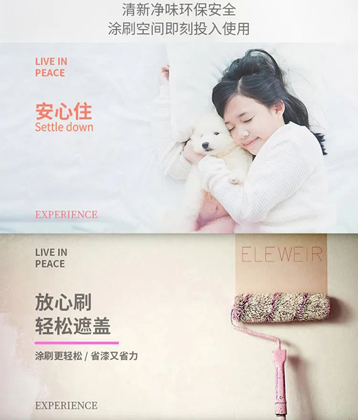 蛋壳光可大范围适用于宾馆、酒店、别墅、大型办公楼、医院、食品加工厂、学校等对于环境有比较高要求的场所。当然也适用于住宅,如儿童房、客厅、卧室等;因其优秀的洁净抗污,高效防裂的能力及耐水性,也可以用于地下室,洗手间等区域。