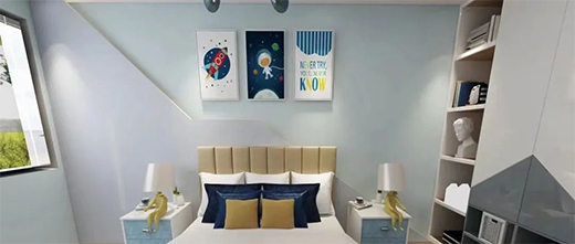 儿童房选择色泽清晰的,充满了天真的童趣,更重要的是质感温润、细腻,耐擦洗,通常宝宝用水性笔在墙上涂画,清水喷一下擦擦就可以清除。