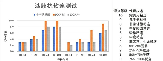 测试结果表明,由于LOCA®A+挥发速率较慢,可一定程度上延长漆膜的开放时间。