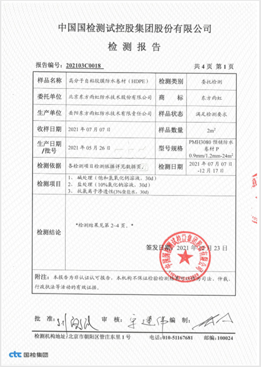 防水工程的质量,三分靠材料,七分靠施工。东方雨虹HDPE高分子自粘胶膜卷材可直接空铺于基层上,无需保护层施工,简化工序,在优化工程工期的同时,推动行业共同向减排降碳、节能降耗方向发展。
